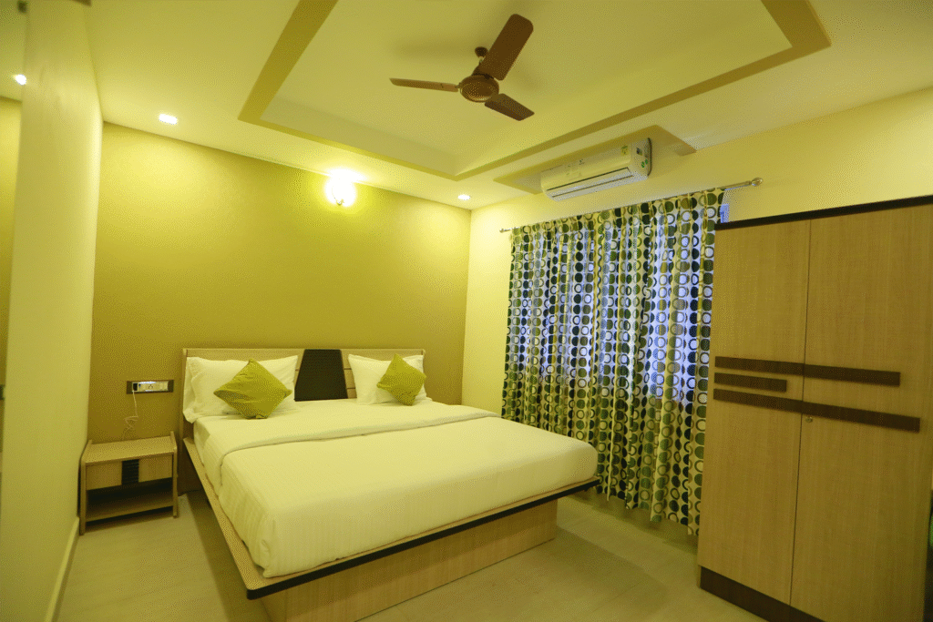 Furnished rooms offering elegant interiors, premium bedding, modern amenities,