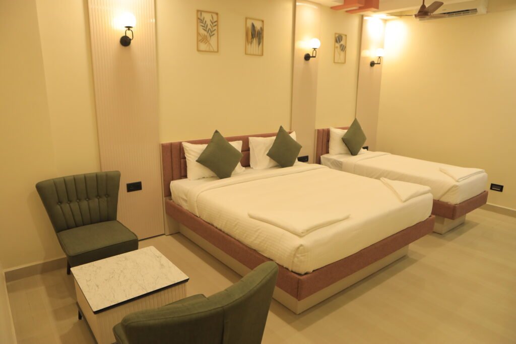 Just 1 km from Chennai International Airport, Hotel Kans One Pallavaram is your perfect choice for transit stays, business meetings, and family functions. With 29 luxurious rooms, two grand banquet halls, and a multi-cuisine restaurant, this flagship property blends luxury with accessibility.